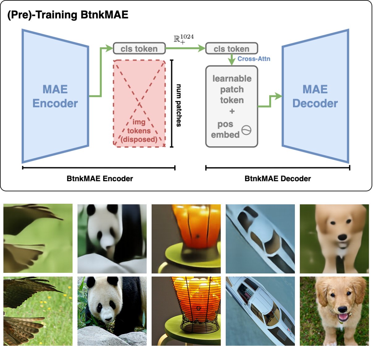 A modified Masked Autoencoder (MAE) that encodes each image into a single 1024-dimensional